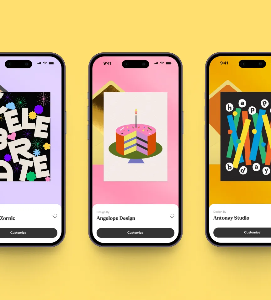 We partner with independent artists to keep our greetings design-forward. We have thousands of beautiful, fun, and creative cards to choose from. Our product is clean and easy to use.
